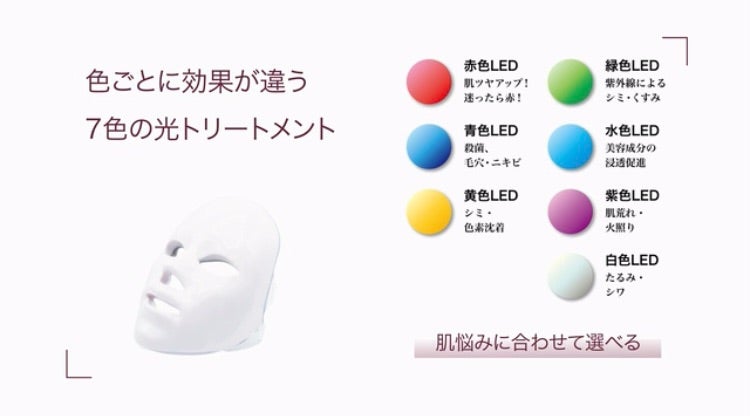 色々な色の光がありますが、赤色はしわやたるみに、青色はニキビや炎症に、緑色は色素沈着やくすみに効果的です。LEDフェイシャルは痛みもなく、副作用もほとんどありません。