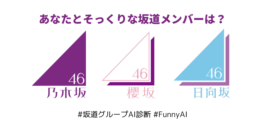 坂道シリーズ3グループ「乃木坂46」「櫻坂46」「日向坂46」の現メンバー75人を横断して、あなたの顔に最も似ているメンバーをAIが判定。グループの壁を越えたそっくり度つきトップ3ランキングで結果を表示します。